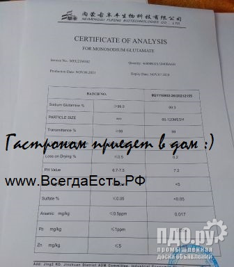 | Глутамат натрия 25кг размер 40-120 Китай |
