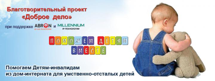 В рамках проекта «Доброе дело» мы оказываем прямую финансовую помощь, а также помощь в приобретении необходимых лекарственных средств, средств гигиены, одежды, игрушек и книг для воспитанников Разночиновского детского дома-интерната для умственно отсталых детей.