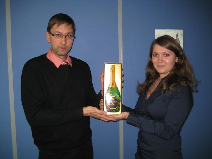 С 16 по 22 сентября среди менеджеров по продажам лизинговой компании «Центр-Транс» прошел конкурс «Брызги шампанского». Сотрудников оценивали по критерию результативности холодных звонков, призом выступала бутылка шампанского. Победителем стала менеджер по продажам Северина Наталья.