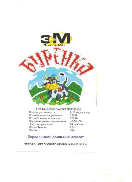 * Доильный аппарат бытовой "Буренка" для индивидуального домашнего пользования,