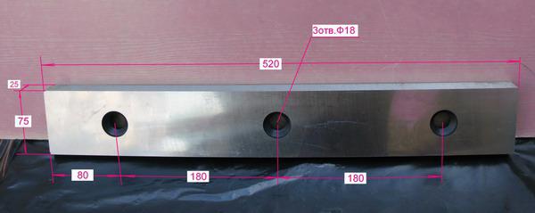 Ножи этого типа (комплект 8 штук, размер ножа 520 x 75 x 25 мм) предназначены для работы в качестве режущего инструмента на ножницах по металлу Н3121, НД3317.