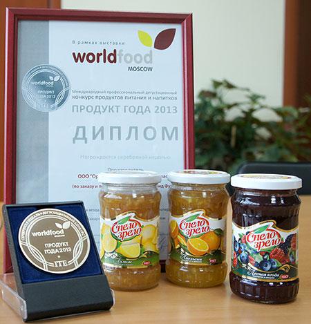 Продуктом года 2013 признана овощная и фруктовая консервация СПЕЛО-ЗРЕЛО,  которая, по мнению жюри, стала одной из лучших на российском рынке консерваций и награждена медалью за качество товара на выставке WorldFood 2013.