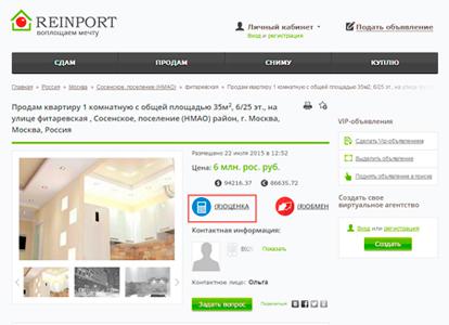 На портале «Рейнпорт недвижимость» теперь доступна онлайн-оценка недвижимого имущества. География предоставления услуги распространяется на 14 крупнейших городов (Алматы, Астана, Киев, Харьков, Минск, Брест, Москва, Санкт-Петербург, Нижний Новгород, Екатеринбург, Челябинск, Новосибирск, Казань, Самара) в четырех странах мира. Функция (R)Оценка на сайте представлена кнопкой голубого цвета, доступна всем пользователям и совершенно бесплатна.