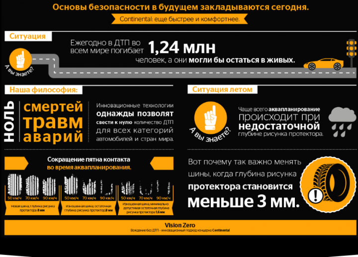 Ежегодно в ДТП в мире погибает 1,24 млн человек, а ведь этого можно было избежать, если бы водители знали больше фактов о влиянии шин на безопасность движения. По статистике 1/3 автолюбителей не знают минимально рекомендуемую глубину рисунка протектора шин, а 50% автомобилей используются с неправильным давлением в шинах. При этом это одни из наиболее важных факторов, которые влияют на безопасность движения.