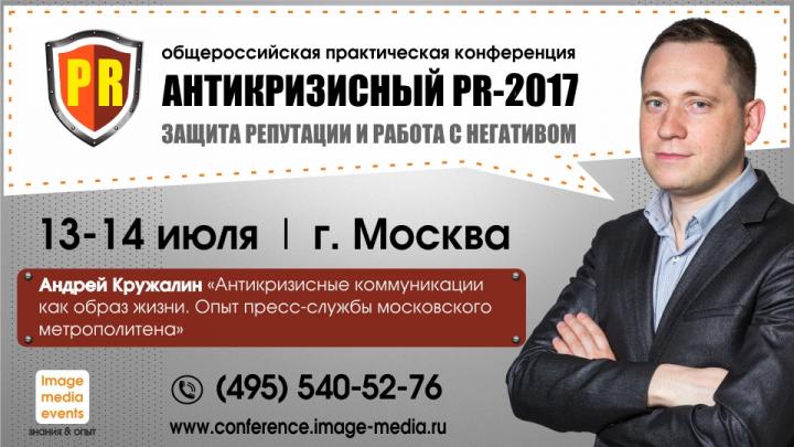 С таким докладом выступит пресс-секретарь начальника ГУП «Московский метрополитен» Андрей Кружалин на общероссийской специализированной тематической конференции «АНТИКРИЗИСНЫЙ PR-2017: защита репутации и работа с негативом», которая состоится в Москве 13-14 июля.