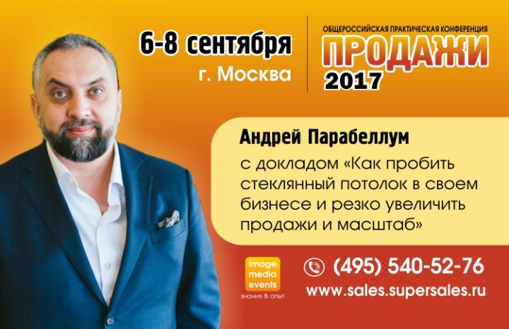 Так называется доклад, с которым выступит легендарный бизнес-спикер и предприниматель Андрей Парабеллум на Общероссийской практической конференции «ПРОДАЖИ-2017», которая состоится в Москве 6-8 сентября.