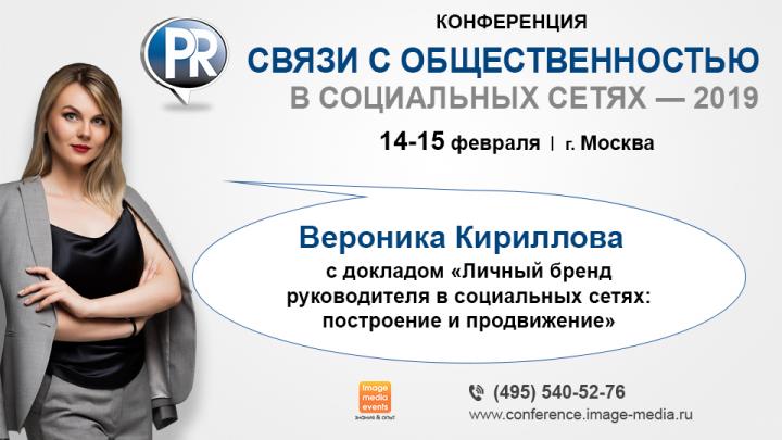 С таким докладом выступит директор PR-агентств Zebra Company и «ИМЯБРЕНД» Вероника Кириллова на ежегодной международной конференции «Связи с общественностью в социальных сетях-2019», которая пройдет 14-15 февраля 2019 года в Москве.