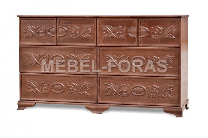 Интернет-магазин «Мебель-Форас» делает скидки до 10% на некоторые модели комодов из массива. На странице представлены изделия как для просторных, так и малогабаритных помещений. Комоды отлично впишутся в интерьер классической и современной спальни, детской, гостиной. Изделия изготовлены из массива сосны. Они экологичные, имеют приятный запах и благородный внешний вид. Дополнительное лакокрасочное покрытие и надежная фурнитура обеспечивают их долгий срок эксплуатации. Все изделия снабжены вместительными выдвижными ящиками.