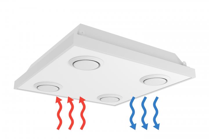 Особая конструкция корпуса закрытого облучения без выделения озона, позволяет использовать обеззараживатель в присутствии людей для снижения количества вирусов и бактерий в воздухе. Для этого загрязненный воздух с помощью бесшумных вентиляторов подается в камеру обработки  и после облучения, очищенный поступает обратно в помещение через воздушные диффузоры. При этом изделие способно очистить воздух от вирусов на 99,9% разрушительно действуя на ДНК клеточного ядра микроорганизмов.