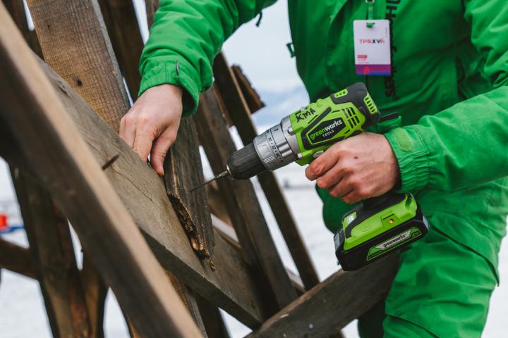 Greenworks уже не в первый раз поддерживает молодежные проекты, и уже второй год подряд становится генеральным спонсором фестиваля “АрхБухта”, который проходил с 10 по 15 марта на одном из самых интересных мест озера Байкал - острове Ольхон. Для воплощения креативных задумок молодых архитекторов на морозе помог аккумуляторный ручной инструмент Greenworks.