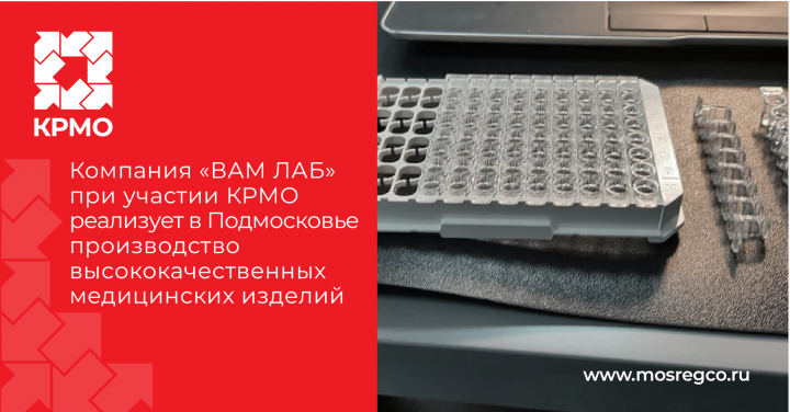 Компания «ВАМ ЛАБ» на территории Подмосковья реализует инвестпроект производства высококачественных пластиковых медицинских изделий. Новое предприятие появится в Дмитровском городском округе, что позволит создать в муниципалитете около 20 рабочих мест для высококвалифицированных специалистов. Содействие в подборе земельного участка для реализации проекта инвестору оказала Корпорация развития Московской области (КРМО).