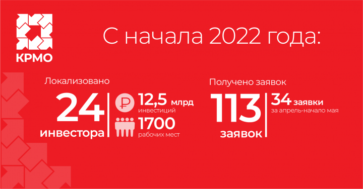 «Важно добавить, что в апреле-начале мая 2022 года при участии Корпорации развития Московской области в регион привлечено 12 инвесторов — столько же, сколько за весь первый квартал 2022 года. Всего с начала текущего года специалисты КРМО получили 113 заявок от представителей среднего и крупного бизнеса на реализацию инвестпроектов в Московской области, из них 34 заявки получены в апреле-начале мая. Это говорит об активизации инвестиционных процессов в регионе, что вселяет оптимизм и уверенность в том, что в этом году все поставленные задачи по привлечению инвестиций в экономику Подмосковья будут выполнены. Отрадно, что при участии Корпорации развития Московской области в регионе планируют расширение своих производств производители высокотехнологичных изделий из различных сфер деятельности, что способствует ускорению импортозамещения и инновационному развитию отечественной экономики, а также играет важнейшую социальную роль», - отметил генеральный директор Корпорации развития Московской области Владимир Слипенькин.