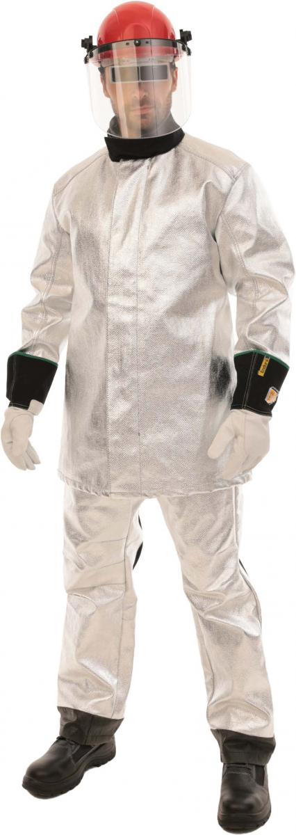 Высокоэффективная защита —  основная задача алюминизированной арамидной ткани. Она расположена на участках, которые испытывают более интенсивное воздействие теплового потока высокой плотности. Благодаря термоогнестойкости, заложенной на молекулярном уровне, арамидный материал не подвержен термической усталости: под действием повторяющихся нагревов и охлаждений ткань не обугливается, сохраняет свои физико-механические и защитные характеристики. За счет этих свойств костюм служит на протяжении всего нормативного срока. Поверх арамида нанесено алюминизированное покрытие, что повышает уровень защиты от теплового излучения. Зеркальная поверхность материала отражает тепловой поток и снижает скорость поглощения тепла, позволяя работнику длительное время находиться в непосредственной близости от различных источников излучения: расплавленного металла или оборудования, деталей, нагретых до высоких температур.