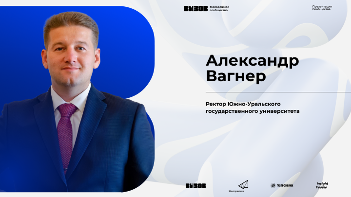 Об этом заявил Александр Вагнер, ректор Южно-Уральского государственного университета. На базе университета 10 ноября состоится презентация Молодежного сообщества ВЫЗОВ, созданного по инициативе Негосударственного института развития «Иннопрактика» и продюсерского центра Инсайт Люди. В мероприятии примут участие приглашенные спикеры, среди которых выступят популярные блогеры. Презентация состоится в конференц-зале «Сигма» по адресу: Челябинск, просп. Ленина, 78 В.