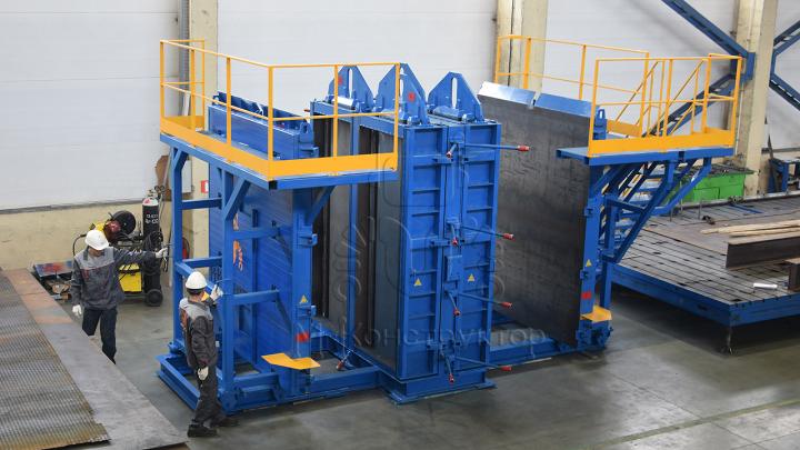 Перед заливкой бетонной смеси откатные борта фиксируются замками-стяжками, установленными на основании в торцевых, верхних и нижних его частях. На торцах бортов имеются ступеньки для обеспечения доступа к средним торцевым замкам-стяжкам. Удобство работы обеспечивает площадка обслуживания с лестницами. В комплектацию также входит площадка для хранения, чистки и обработки пуансонов разделительной жидкости с поддоном для её сбора.