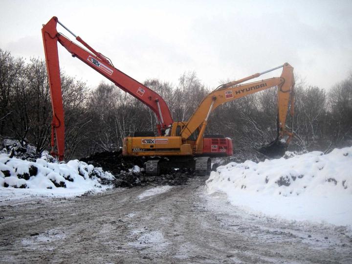 Компания Техоптимум-разработка котлована и вывоз грунта. Экскаваторы Hitachi ZX 330 и HYUNDAI 320 LC-7 компании Техоптимум.
