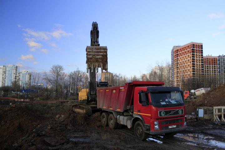 Компания Техоптимум-земляные работы. Экскаватор VOLVO EC380DL и самосвал Volvo FM 400 компании Техоптимум.