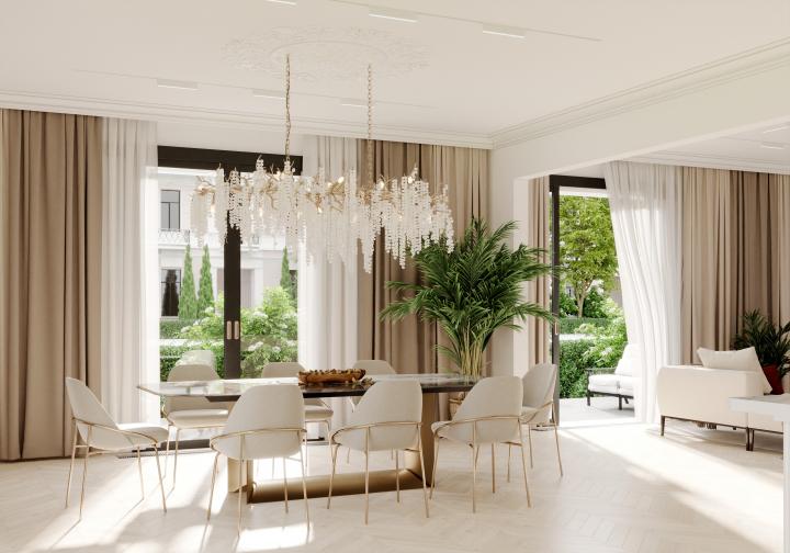 В каждом жилом блоке парадного корпуса с центральным порталом предусмотрены сервисные лифт и лестница, изолированные от лифтового лобби, поэтому сервисный персонал и жители не пересекаются. В планировках заложены высокие стандарты: просторные мастер-спальни снабжены гардеробными и собственными ванными комнатами, для продуктивной работы предусмотрен домашний офис, а кухни, столовые и гостиные можно объединять или разделять. Всего в продаже насчитывается десять вариантов недвижимости разной площади, но с большим количеством спален (от четырех).