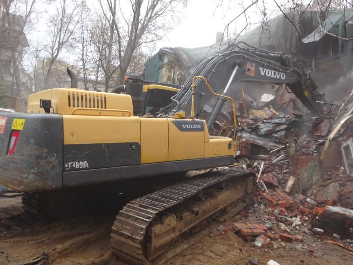 Компания Техоптимум-демонтаж строения. Экскаватор VOLVO 380 компании Техоптимум.