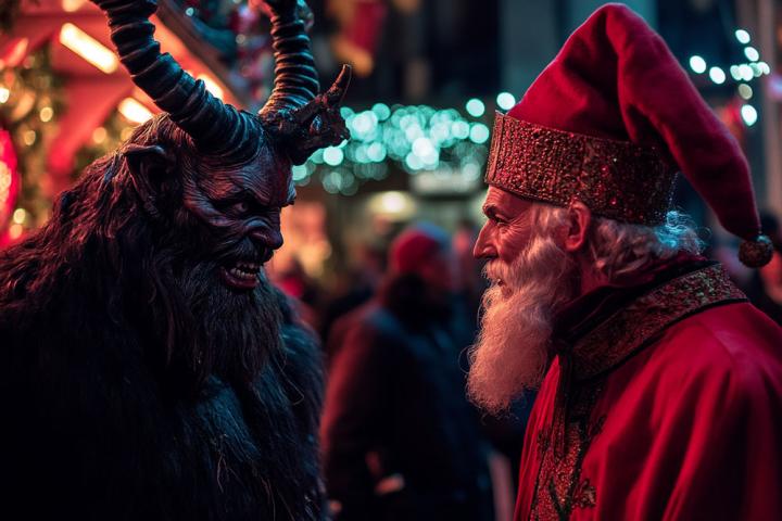 Кто такой Крампус? В Австрии и немецкоговорящих альпийских регионах этот демонический персонаж — важная часть праздничного сезона. Он выглядит как дьявол с длинными рогами и козлиной бородой, напоминающий традиционные изображения Сатаны. Вы можете увидеть его на открытках или в виде шоколадных фигурок. Но также можно столкнуться с процессией Крампусов, которые шествуют по городу с колокольчиками и цепями, запугивая прохожих или ударяя их прутьями.