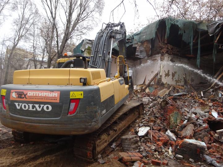 Компания Техоптимум-демонтаж строения. Экскаватор VOLVO 380 компании Техоптимум.