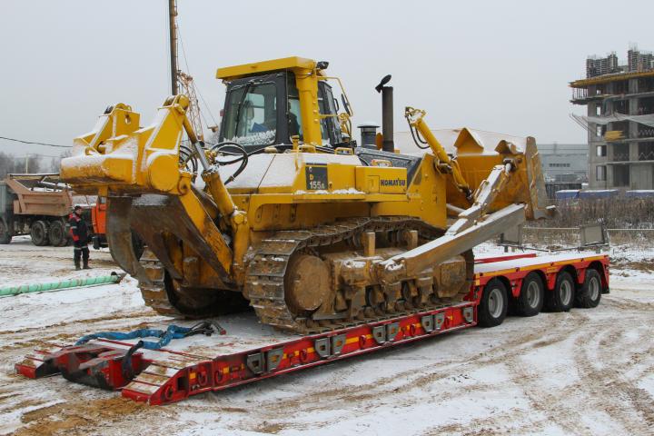 Перевозка спецтехники тралом-компания Техоптимум. Тягач DAF 105 и низкорамный полуприцеп Faymonville компании Техоптимум.