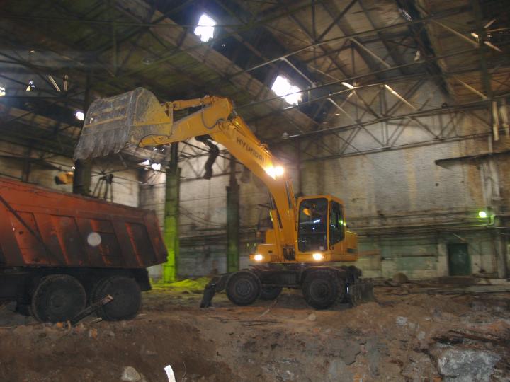 Компания Техоптимум--разработка котлована и вывоз грунта. Колесный экскаватор Hyundai r 170 w-7 компании Техоптимум.