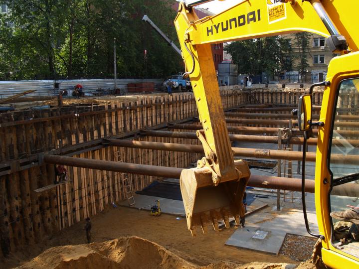 Компания Техоптимум-разработка котлована и вывоз грунта. Экскаватор HYUNDAI 320 LC-7 компании Техоптимум.
