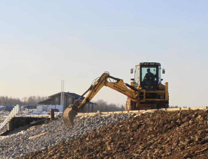 Компания Техоптимум-разработка котлована и вывоз грунта. Экскаватор-погрузчик New Holland LB115.B компании Техоптимум.