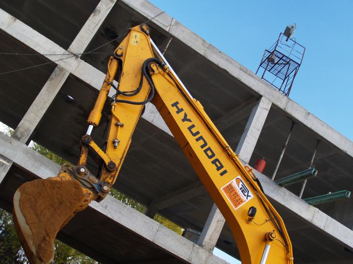 Компания Техоптимум--разработка котлована и вывоз грунта. Колесный экскаватор Hyundai r 170 w-7 компании Техоптимум. www.tehoptimum.ru