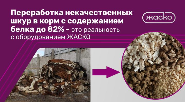 Шкуры содержат большое количество полезных веществ, таких как белки и аминокислоты. Если их правильно обработать, можно получить качественный корм, который повысит продуктивность животных. После экструдирования в конечном продукте показатель легко усвояемого белка доходит до 80-82%, что даже выше, чем в рыбной муке. Причём для экструдирования подойдёт любая шкура — независимо от того, была ли она изначально предназначена для выделки и отбракована из-за дефектов, засолена она или высохла, тонкая или нет, получена летом или зимой.