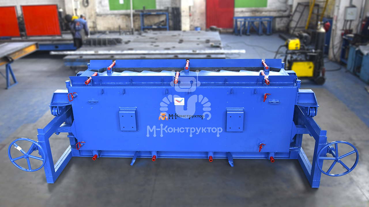 Для ускорения затвердевания бетонной смеси комплектуется паровой рубашкой. Также предусмотрены монтажные площадки под виброоборудование. Формирование технологических отверстий осуществляется с помощью съемных закладных элементов. Жесткость конструкции в процессе заливки обеспечивает комплект стяжек.