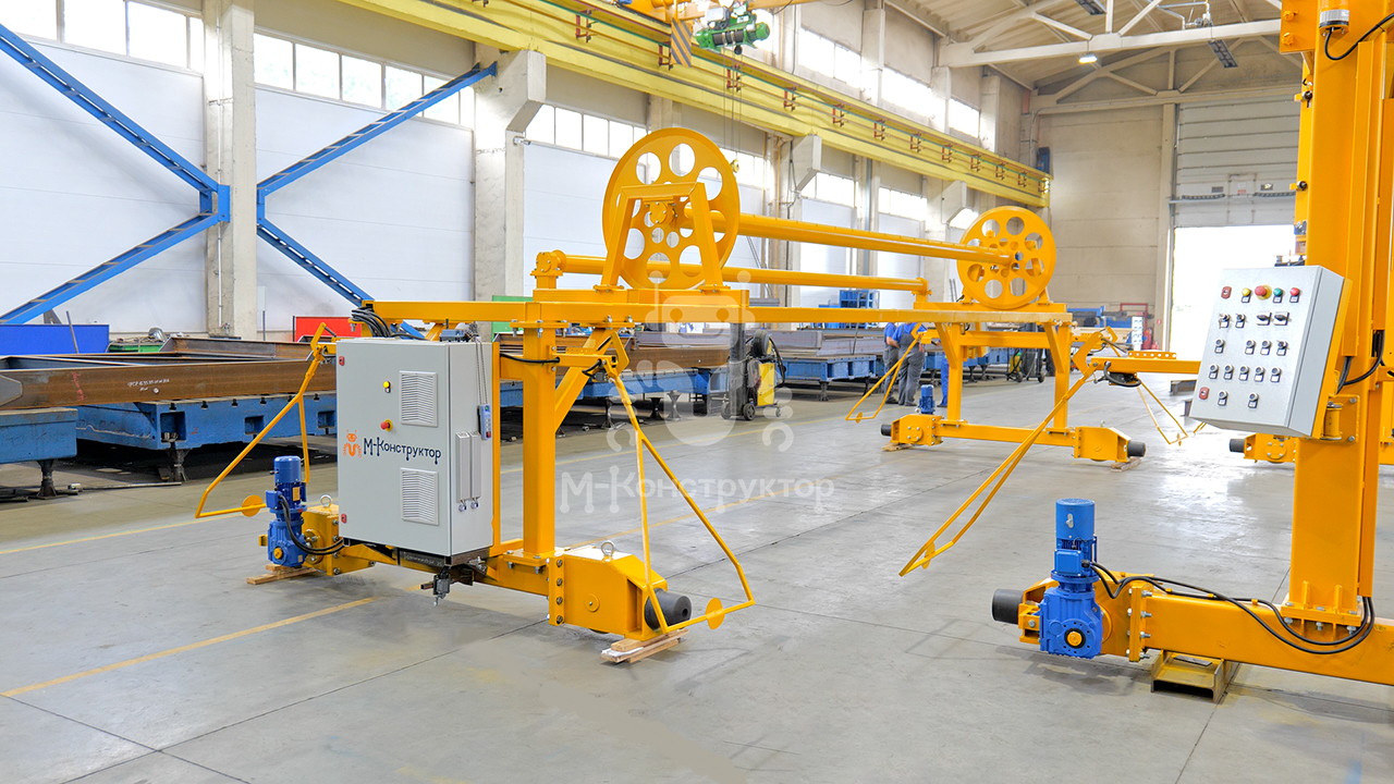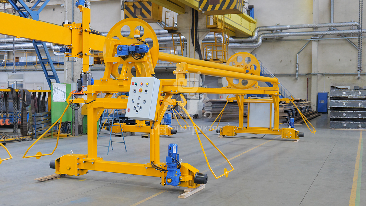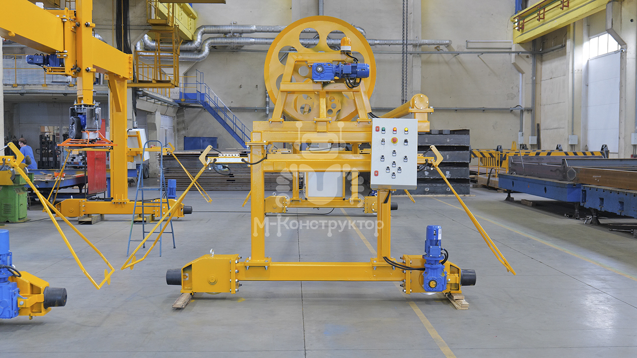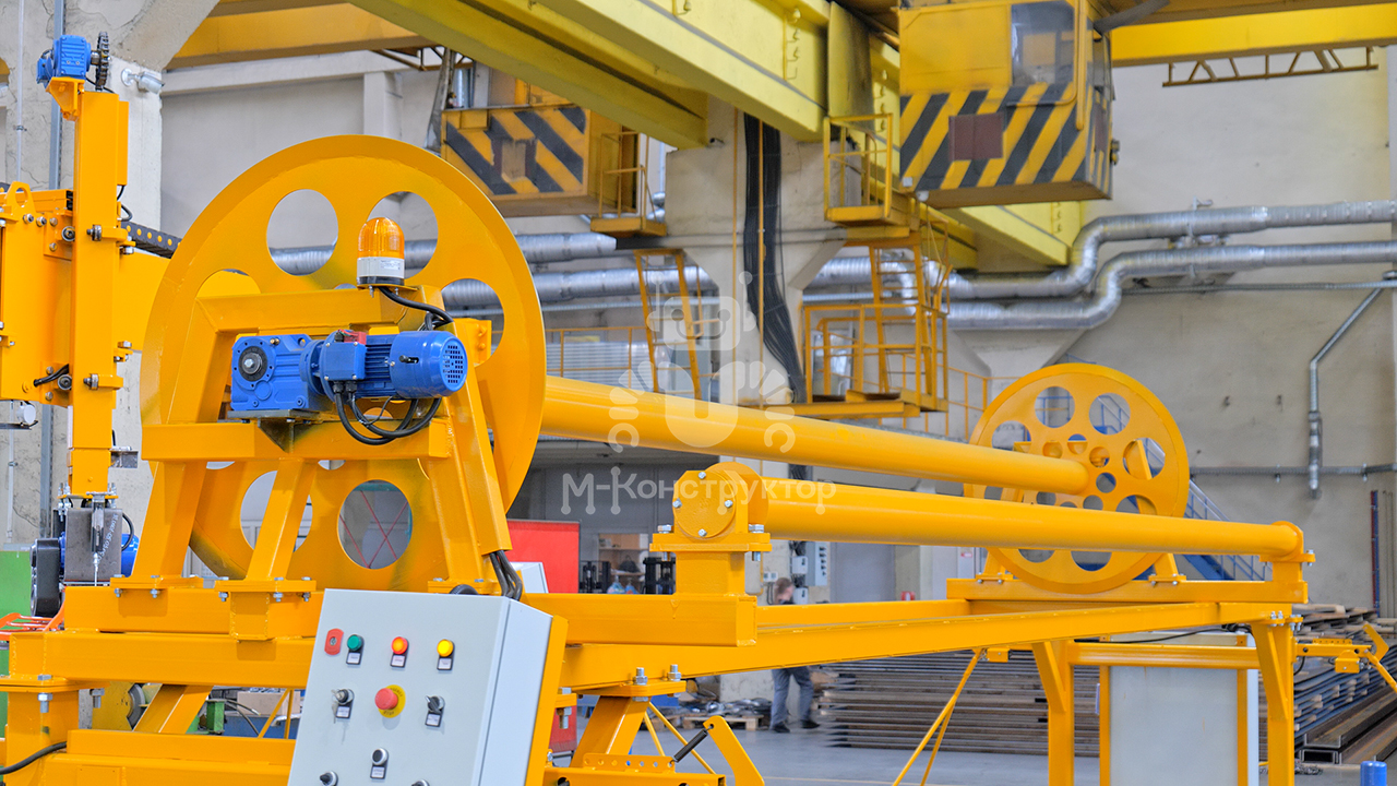 Размотчик является частью комплекса, в который также входят кюбель для транспортировки и подачи бетона (ссылка), линия формования, бетоноукладчик, магнитная бортоснастка для изготовления ферм и заглаживатель бетона, т.н. вертолет.