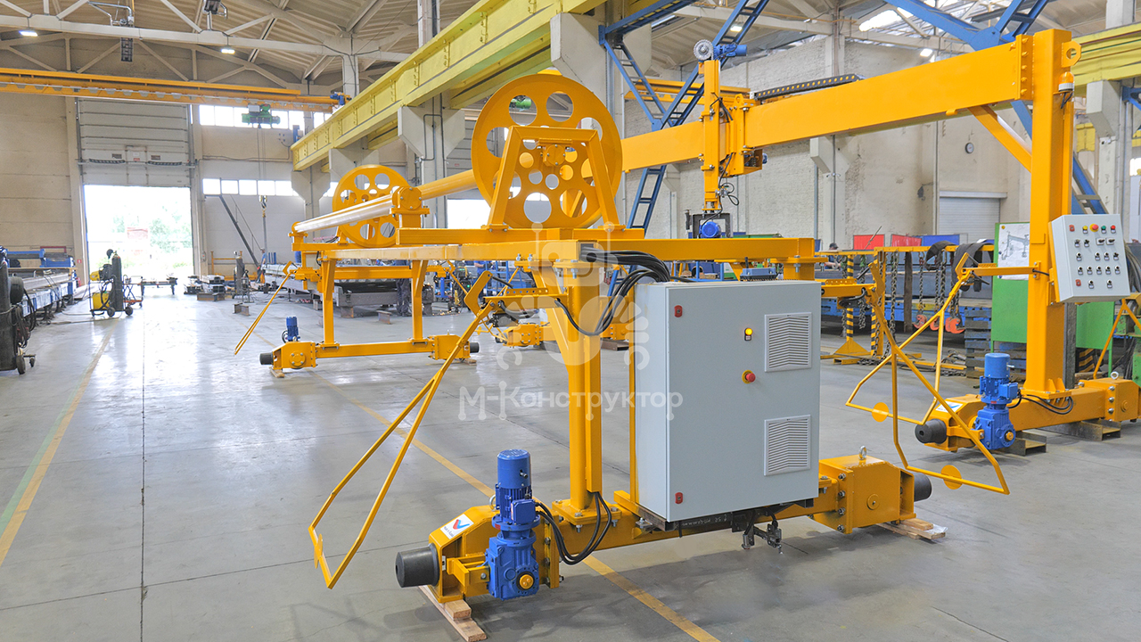 Новая установка завода «М-Конструктор» предназначена для равномерного накрывания свежезаформованных ЖБИ ПВХ-полотном. Это позволяет поддерживать необходимую влажность и температуру в период начального твердения, предотвращая пересыхание, и сокращает затраты тепловой энергии, направленной на ускорение набора прочности изделием. Полотно укладывается не на само ЖБИ, а на предварительно установленные дуги, чтобы полотно его не касалось, и был осуществлен воздушный зазор.