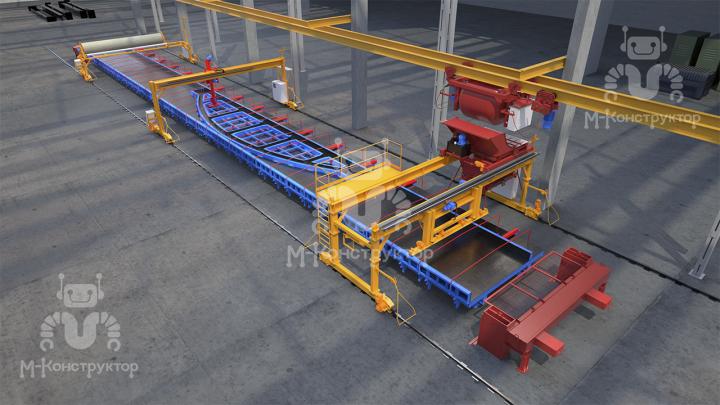 На любом заводе ЖБИ есть оборудование, вокруг которого выстраивается весь технологический процесс. В нашем проекте — это линия формования — основа, без которой невозможна ни работа размотчика, ни заглаживающего вертолета, ни адресной подачи, о которых мы писали ранее, а в настоящее время идет монтаж всего вышеперечисленного оборудования «М-Конструктор» на производственных площадях заказчика за пределами России. Подачу бетонной смеси будет осуществлять портальный бетоноукладчик, о нем в следующих публикациях, а сегодня расскажем о технических особенностях формующей поверхности, но сначала вернемся к заголовку.