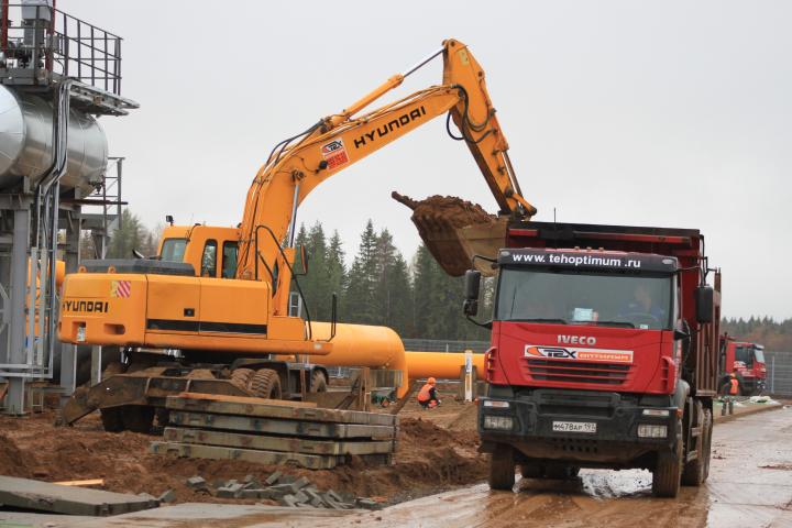 Компания Техоптимум-разработка котлована и вывоз грунта. Экскаватор Hyundai r 170 w-7 и самосвал IVECO TRAKKER 380 компании Техоптимум. www.tehoptimum.ru