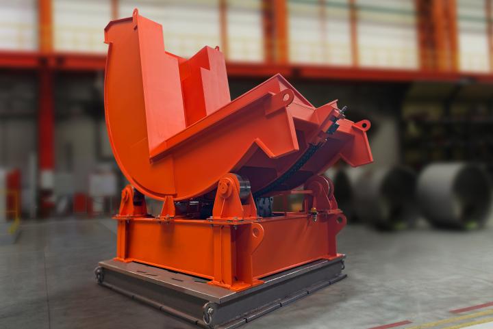Оборудование предназначено для перемещения рулонной стали из горизонтального положения в вертикальное и обратно, что необходимо для дальнейшего хранения, упаковки, транспортировки или подачи материала в производственную линию. Масса кантуемых рулонов может составлять от 2 до 34 тонн, а максимальная температура — 250 градусов по Цельсию. Ранее подобную продукцию завод не изготавливал.
