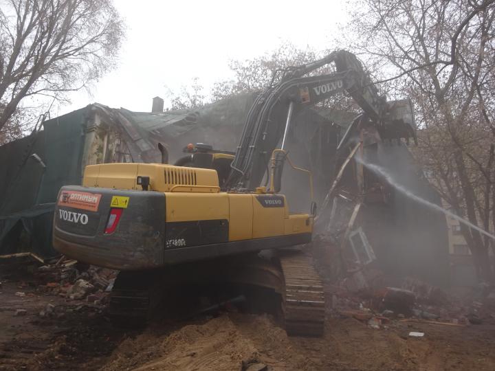 Компания Техоптимум-демонтаж строения. Экскаватор VOLVO 380 компании Техоптимум.