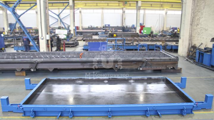 Первое, что бросается в глаза, глядя на форму для стеновых панелей — это опоры на торцах, предназначенные для ярусного складирования этого оборудования.