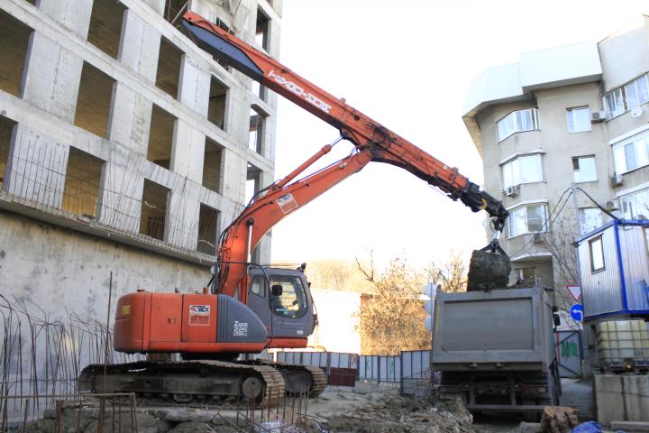 Компания Техоптимум-разработка котлована и вывоз грунта. Экскаватор грейфер Hitachi Zaxis 225 компании Техоптимум. www.tehoptimum.ru
