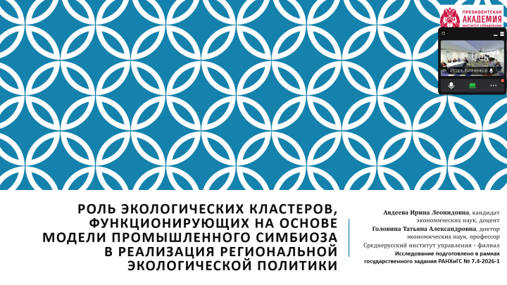 Представители института выступили на пленарном заседании с докладом на тему «Роль экологических кластеров, функционирующих на основе модели промышленного симбиоза в реализации региональной экологической политики», в котором раскрыли суть разработанного организационного механизма развития региональной экологической политики путём создания экологических кластеров, функционирующих на основе модели промышленного симбиоза. Экологическая политика играет значимую роль для субъектов государства, в которых производится добыча полезных ископаемых, так как эта деятельность характеризуется высокой экологической нагрузкой и сопровождается масштабным образованием отходов, способным оказать негативное воздействие на социо-эколого-экономическое развитие региона. Сделали вывод, что реализуемая в настоящее время экологическая политика в субъектах Российской Федерации сталкивается с рядом проблем и требует стратегической модернизации. Предложили механизм реализации региональной экологической политики, включающий определение факторов, влияющих на ее осуществление, уточнение цели и задач, конкретизацию субъектов и объектов, в-деление требуемого обеспечения, методов и инструментов, а также принципов осуществления политики. Региональную экологическую политику целесообразно выстраивать на основе концепции кластеризации. Для снижения негативно воздействия добывающей промышленность на окружающую среду, для регионов ЦФО, на территории которых активно производится добыча металлических руд предложено формирование экологических кластеров на основе модели промышленного симбиоза, предполагающей организацию взаимодействия между добывающими компаниями, переработчиками отходов в строительные материалы и организациями, нуждающимися в ресурсах. Данное взаимодействие целесообразно организовать на основе цифровой платформы. Функционирование экологических кластеров позволит обеспечить получение экономических, социальных и экологических эффектов.