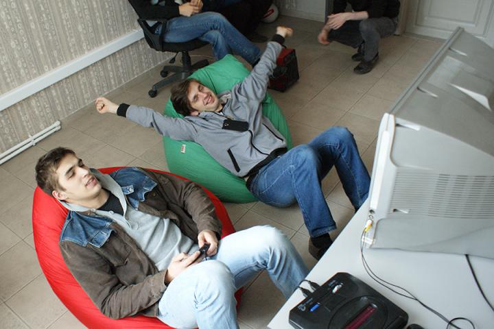 Вставать по утрам все сложнее и сложнее, а теплое одеяло — лучший друг. Как не впасть в осеннюю депрессию и сохранить бодрость духа? Как-то мы задались этим вопросом на работе. Ответ нашли быстро — решили сообразить на сегу. Скинулись, кто чем мог и уже на следующий день принесли на работу старенький, но рабочий, телевизор и, конечно же, коробочку с надписью sega. Распаковали, подключили, и понеслось)))