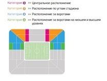 Обратите   внимание  на  официальную  схему  УЕФА,  из которой следует, что первая  категория  это  места  напротив  штрафных  площадей.  На  схеме  четко показана  стандартная рассадка  российской или любой другой квоты болельщиков   в 4-3-2-1-й   категориях  (все должны  сидеть вместе, одним блоком).