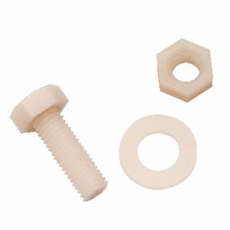 Изготавливается полиамидный крепеж с добавлением к основному сырью эртанола и капролона. Полученный материал весьма надежен, и считается экологически безопасным. Метизы из полиамида устойчивы к влиянию различных углеводов, эфиров, спиртов, слабых кислот и щелочей. Такие изделия не ржавеют в результате воздействия влаги. Безусловным преимуществом данной новинки перед своими металлическими аналогами является и вес: полиамидные крепежи примерно в 7 раз легче, чем метизы из стали. Прочими достоинствами, которые обуславливают все больший спрос на данную продукцию, являются весьма низкий коэффициент трения, устойчивость к ударным нагрузкам, а также абсолютная немагнитность.