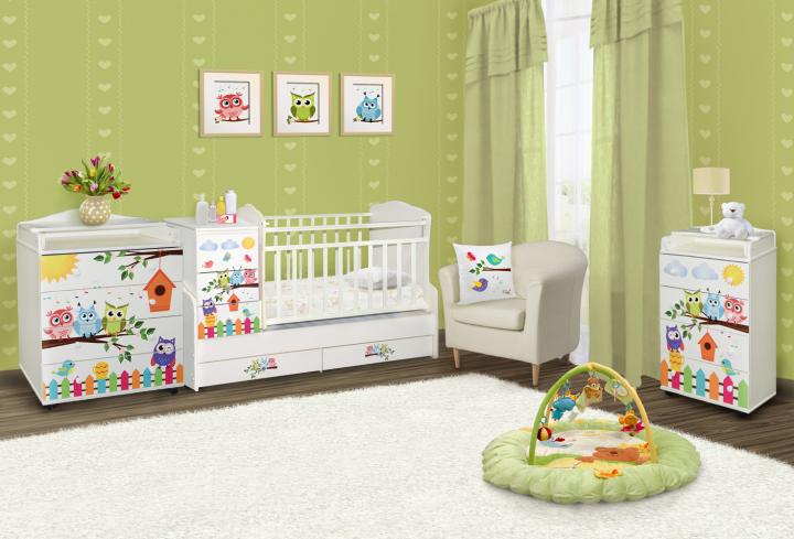 Кровать- трансформер Поющие Совята, комод узкий Совята, комод широкий Поющие Совята, коврик с дугами Фелис.