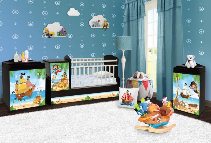 Самое сложное - это выбор мебели. Большее внимание необходимо уделить спальному месту. Оно должно быть удобным и не занимать много пространства. Шкафы лучше не ставить, а использовать комоды, без острых углов. Отличным вариантом является кроватка – трансформер