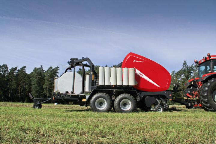 Машины с переменой камерой также могут иметь встроенный обмотчик, как Kverneland 6716 и 6720 FlexiWrap, еще больше оптимизируя процесс производства кормов. Высокая плотность, а также возможность создания больших (до 2 метров) рулонов позволяет минимизировать затраты на их обмотку и хранение.