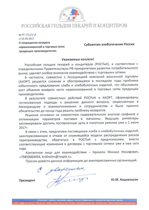 Полный текст обращения "О сокращении возврата нереализованной в торговых сетях продукции производителям" можно посмотреть здесь.