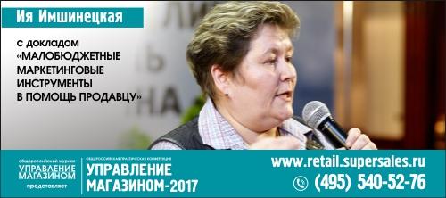 С таким докладом выступит эксперт по системному продвижению Ия Имшинецкая 21-23 июня в Москве на общероссийской практической конференции «Управление магазином-2017».