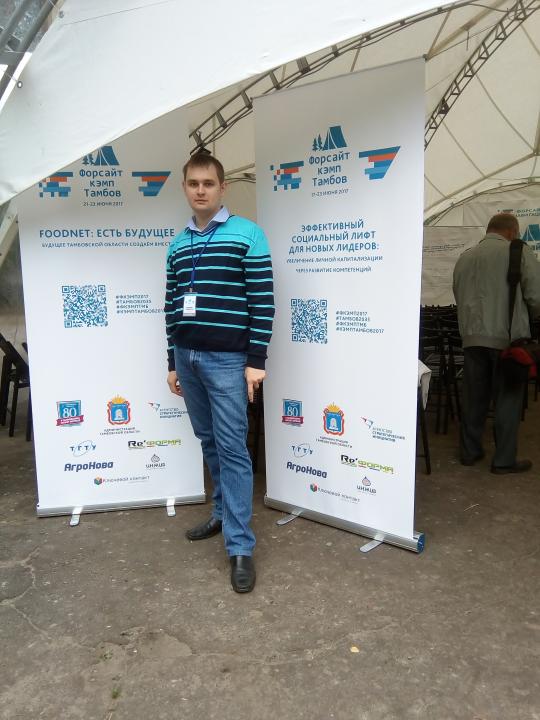 Дмитрий Сдвижков - выпускник «Школы губернаторского резерва» Тамбовской области, в «Форсайт-кэмп-2017» он участвовал по приглашению администрации региона. Повестка сессии была определена исходя из аграрной специфики области: проектирование экономики будущего в сфере продовольственного обеспечения. Участники, разбившись, на девять команд, работали над проектами различной актуальной тематики. Дмитрий вместе с другими молодыми специалистами – предпринимателями, управленцами, учеными – занимался разработкой проекта «Безлюдное производство». Его основной идеей является создание на территории Тамбовской области Центра инновационных технологий, в основу функционирования которого лягут автоматизация и роботизация всех процессов производства за счет увеличения энергопотребления. В частности предполагается, что Центр займется внедрением в сельское хозяйство таких технологий как самоходные роботы-опрыскиватели, климатические камеры, фитотроны, «умные» теплицы, роботизированные фермы